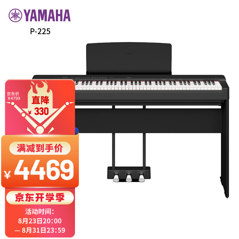 雅马哈(YAMAHA)P225B电钢琴88键重锤初学考级便携成人儿童 主机+木琴架+三踏板价格:4799.00元!