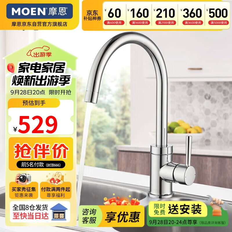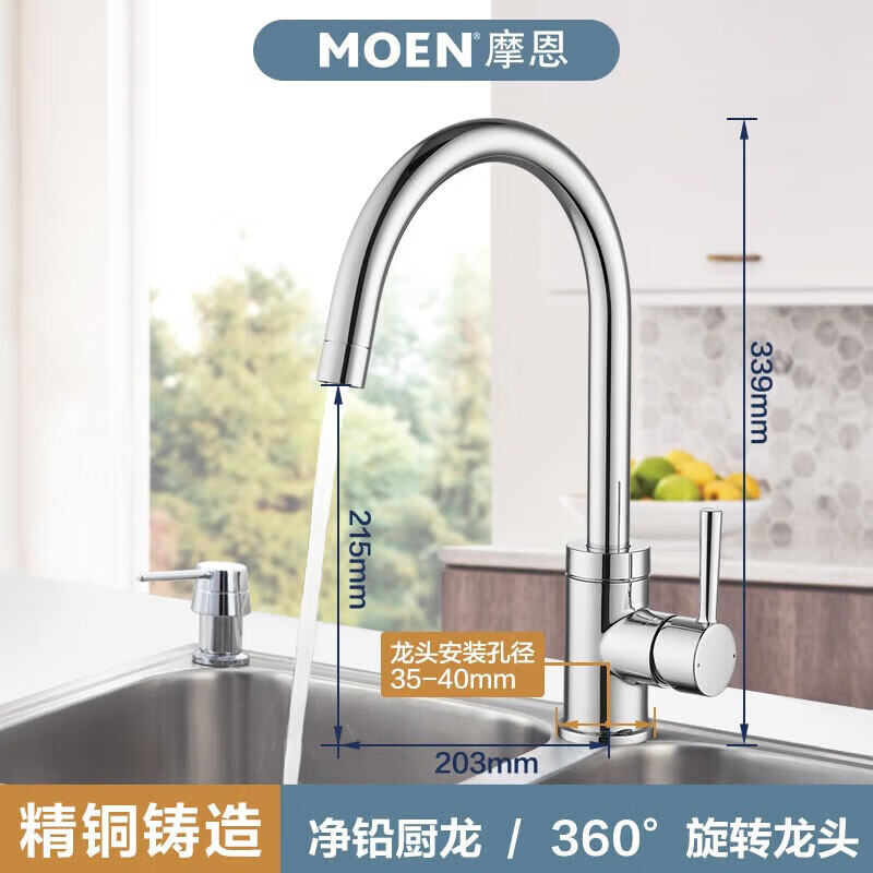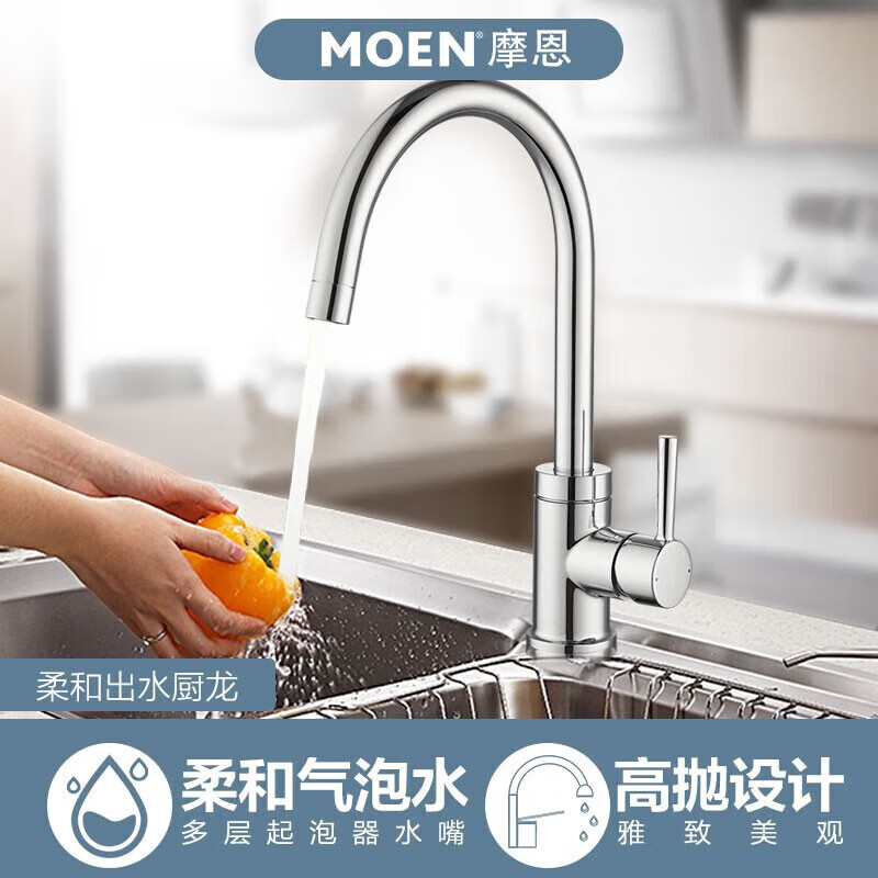摩恩(MOEN)厨房水槽龙头 可旋转洗菜盆洗碗盆龙头 净铅单把手冷热水龙头价格:579.00元!