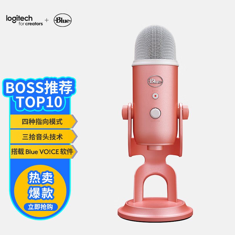 罗技(Logitech) Yeti Aurora 极光系列麦克风 USB电容麦克风 内置声卡话筒 电脑麦克风 K歌录音直播麦克风价格:859.00元!