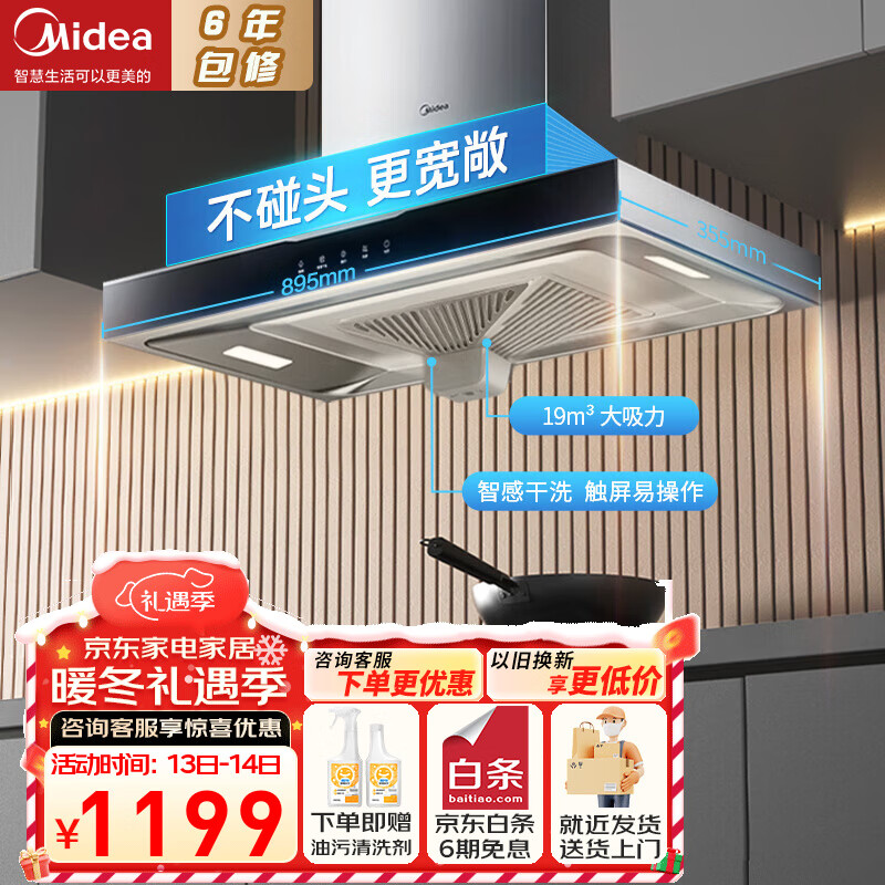美的(Midea)家用抽油烟机爆炒大吸力顶吸排油烟机欧式烟灶套装自清洗触屏吸油烟机T33A 以旧换新 【单烟机T33A】19大风量智能干洗 智能家电价格:1199.00元!