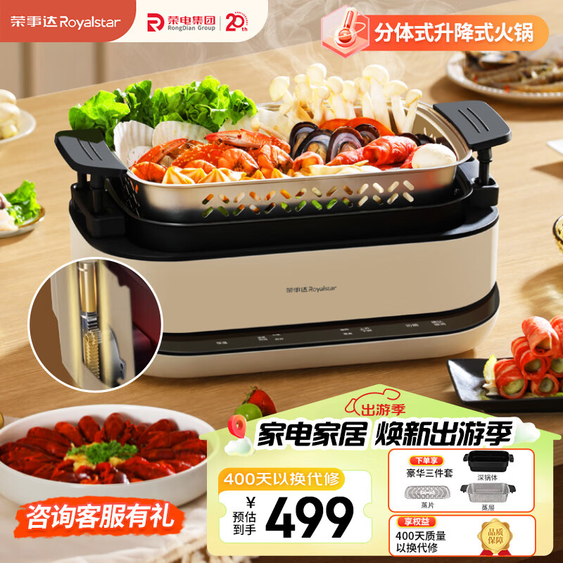 荣事达(Royalstar)升降电火锅自动6L火锅锅电锅双层分体式多功能锅家用涮烤火锅锅具RHG-SJ60E【一键升降】价格:499.00元!