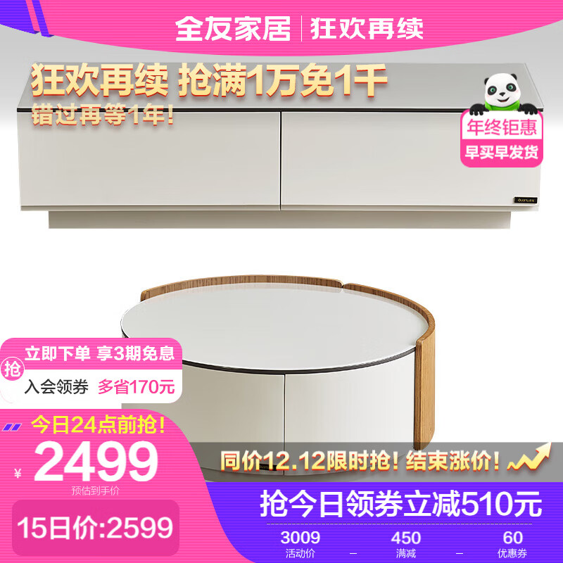全友家居 茶几电视柜组合现代风钢化玻璃茶电客厅储物家具套装DW1130价格:3009.00元!