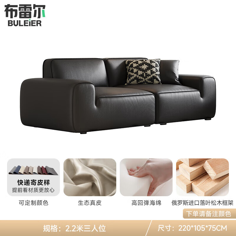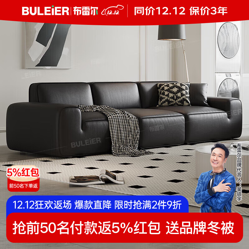 布雷尔(BULEIER)沙发大黑牛豆腐块头层牛皮沙发客厅沙发整装家具价格:2080.00元!