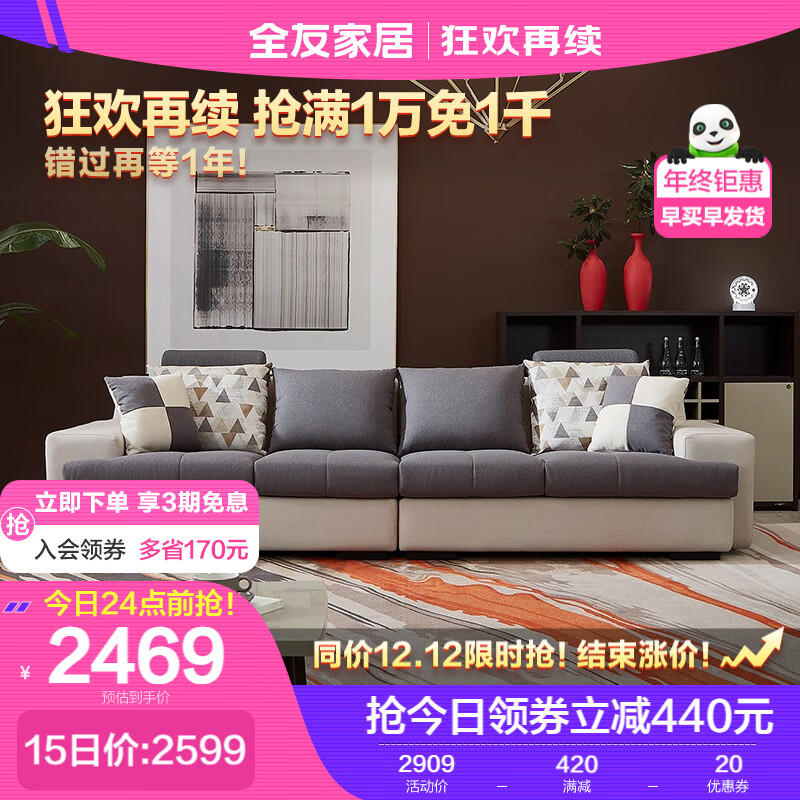 全友家居 现代简约沙发可拆洗 大户型沙发U型沙发组合102117A 布艺沙发(左2+右2)价格:2909.00元!
