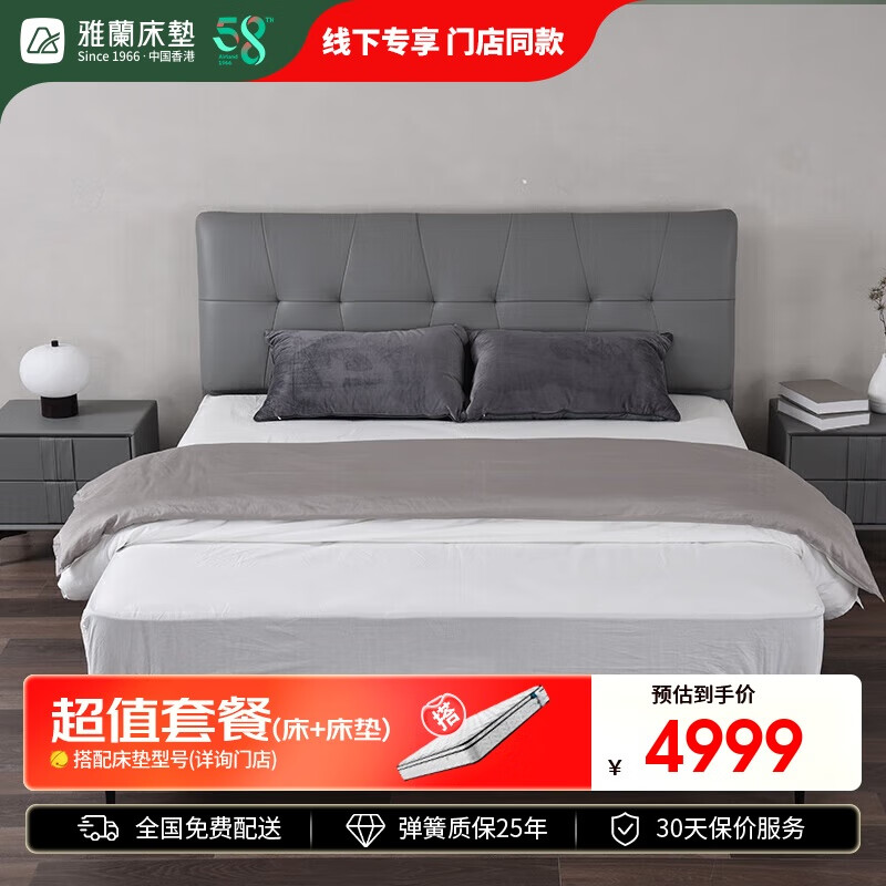 雅兰【超体专享】西西里岛 雅致灰 1.5*2米 套餐【搭配床垫详询门店】价格:4999.00元!