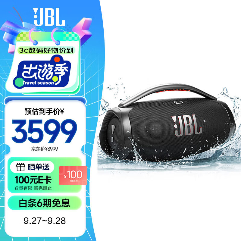 JBL BOOMBOX3 音乐战神三代 便携蓝牙音箱 低音炮 户外音箱 防尘防水 家庭影院音响 音响礼物 黑色价格:3599.00元!