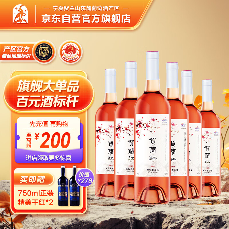 贺兰红赤霞珠桃红葡萄酒国产红酒宁夏贺兰山东麓产区750ml*6瓶整箱价格:680.00元!