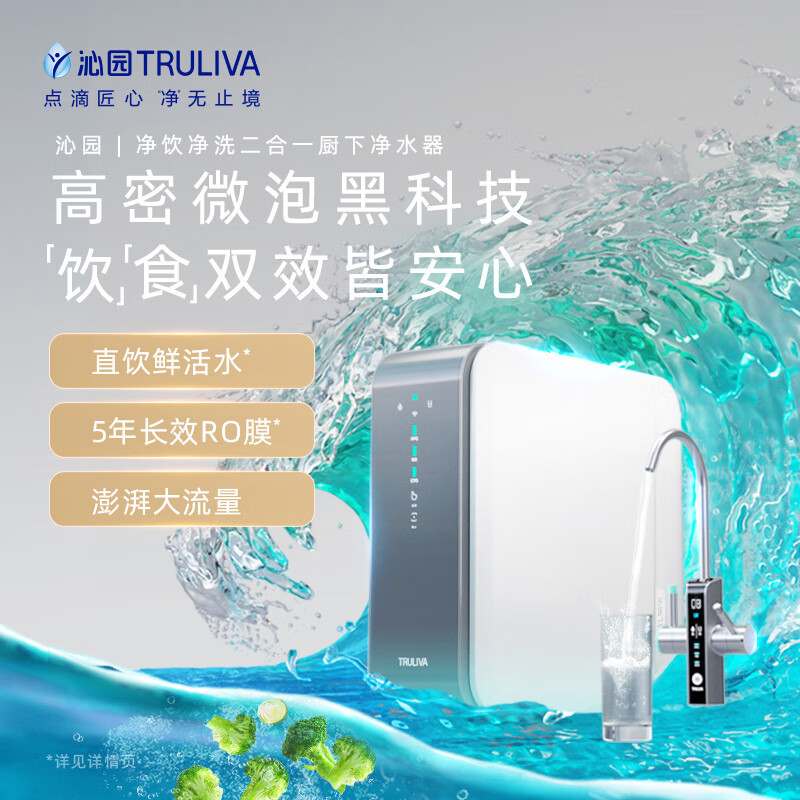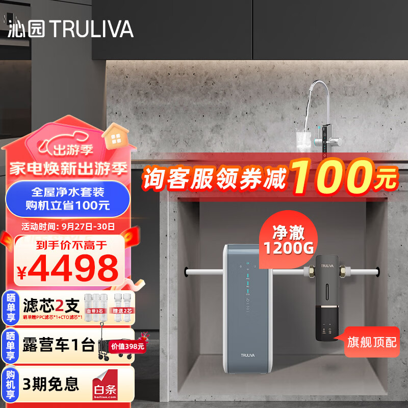 沁园(TRULIVA)净澈双出水1200G 二件套装 净水器UR-SX51270+智能自动冲洗前置过滤器P-O7712价格:4498.00元!