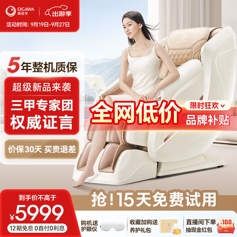 奥佳华(OGAWA)2024按摩椅十新品家用太空舱全身零重力电动智能按摩中医推拿小户型送父母长辈礼物7508pro 浅香云杏价格:8999.00元!