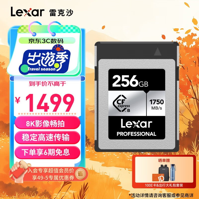 雷克沙(Lexar)256GB CFexpress Type B存储卡 读1750MB/s 富士佳能尼康适配 8K超清录制 cfe卡(SILVER)价格:1499.00元!
