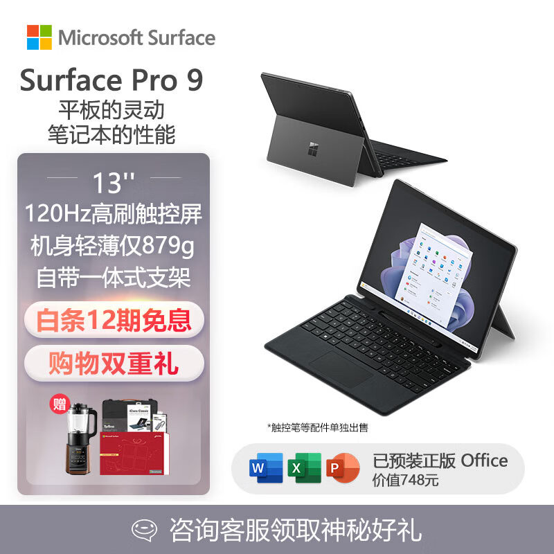 微软Surface Pro 9?二合一平板电脑?石墨灰+典雅黑键盘盖 i7 16G+256G 13英寸120Hz触控屏 商务办公 笔记本价格:13588.00元!