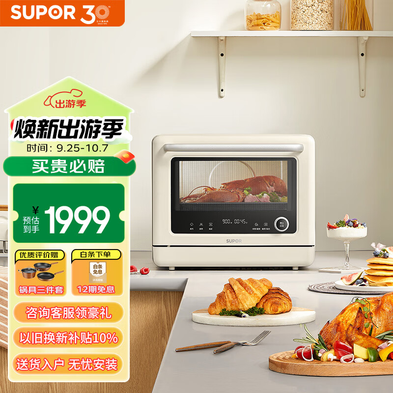 苏泊尔(SUPOR)微蒸烤箱一体机 家用烘焙多功能 台式微波炉 电烤箱 蒸箱三合一 23L大容量 UW30价格:1999.00元!