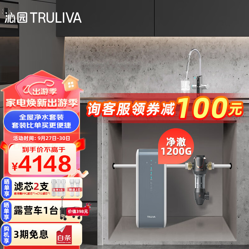 沁园(TRULIVA)净澈双出水1200G二件套装 净水器UR-SX51270+前置过滤器P-A5510(黑)价格:4148.00元!