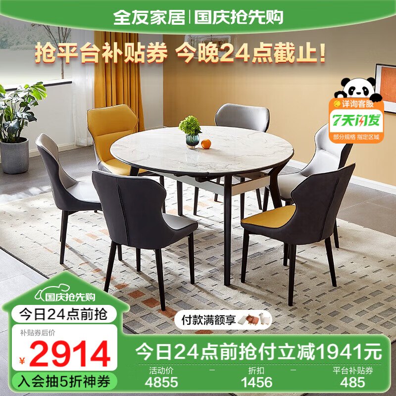 全友家居 现代简约岩板餐桌椅组合伸缩可折叠家用吃饭桌子家具DW1059价格:4855.71元!