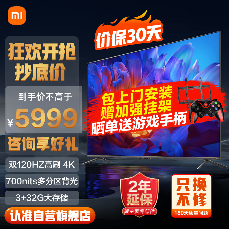 小米(MI)电视ES Pro 75英寸 120Hz高刷 多分区背光 3+32GB 智能液晶平板屏电视机 L75M9-SP[安装版]价格:5999.00元!