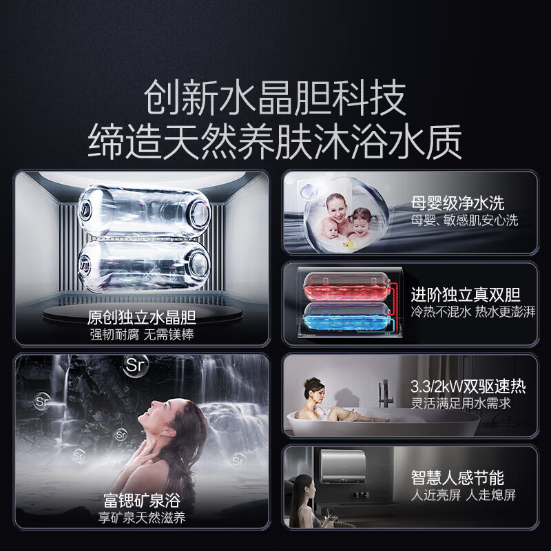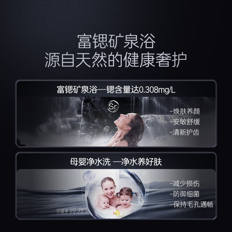 4、很喜欢,喜欢它的颜值,安装师傅也很给力,整体很流畅,但是看上的就是钛金无缝双胆,提到的富锶矿泉浴持续滋养肌肤。智能抑菌阻垢,全时从源头净化水质,守护健康沐浴,母婴、敏感肌肤放心洗。水温上升快,出水流畅,可视化温度,很喜欢,推荐一下,已给五星好评,是用了几天才来评价的,真实有效的。小主们!值得购买哦!