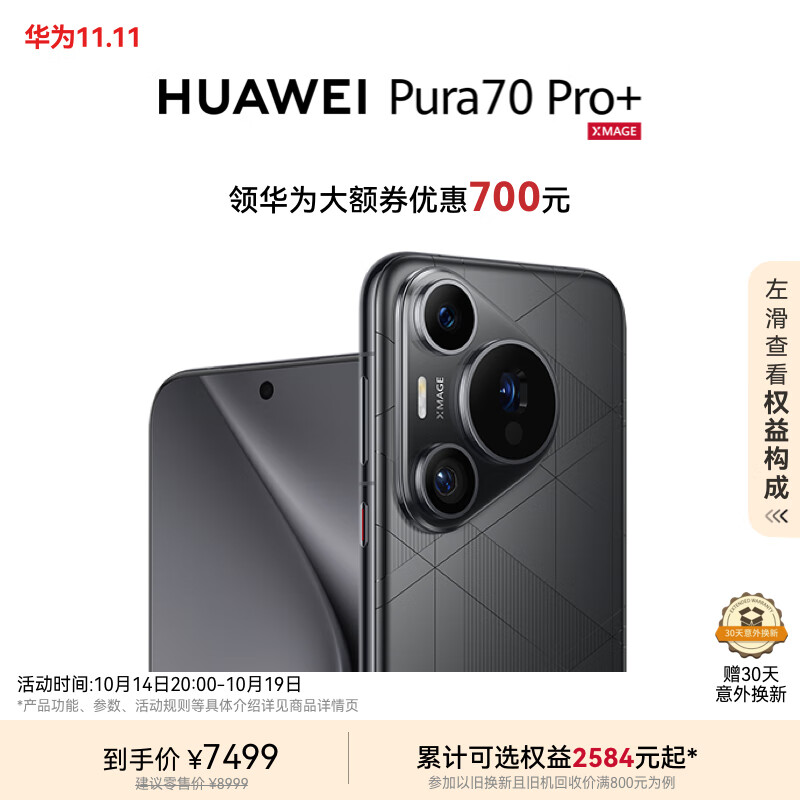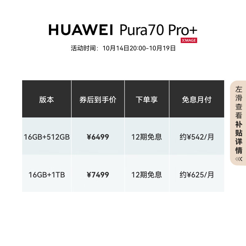HUAWEI Pura 70 Pro+ 魅影黑 16GB+1TB 超高速风驰闪拍 超聚光微距长焦 双卫星通信 华为P70智能手机价格:8199.00元!