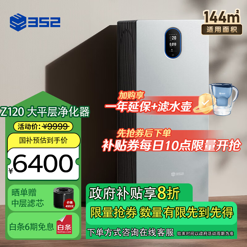 5、新购的352品牌Z120型号的空气清新机,这款机器功能齐全、设计优美,功率强大,使用后整屋感党气息新鲜,特别对新装修房屋清洁作用更明显。