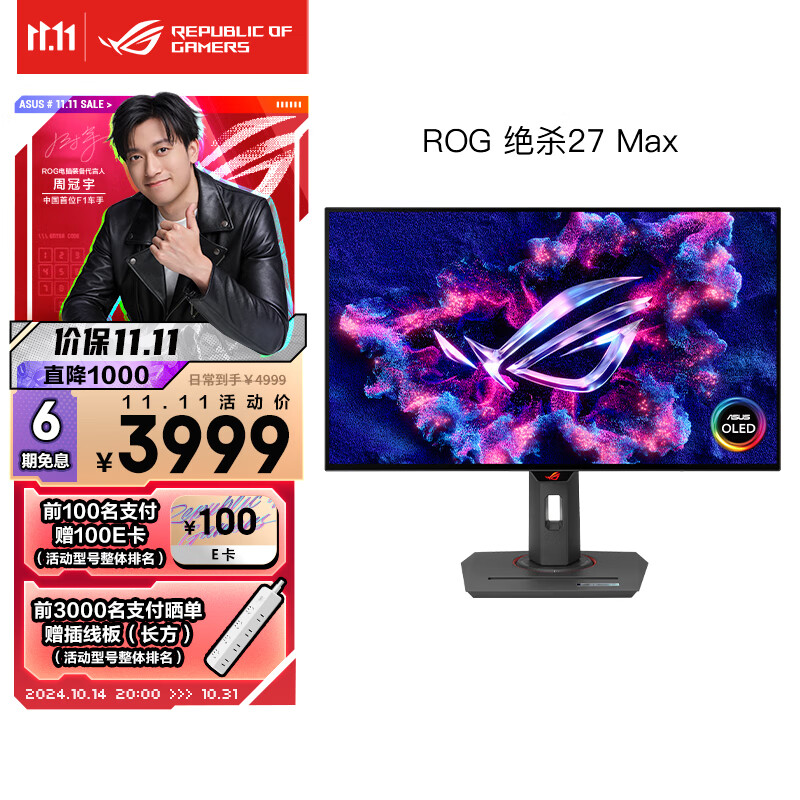 华硕ROG XG27AQDMG绝杀 26.5英寸2K电竞显示器240Hz显示器0.03ms响应HDR400真10Bit G-SYNC OLED显示器价格:3999.00元!