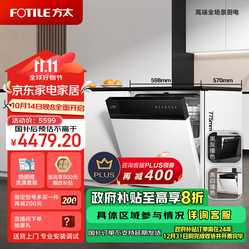 方太熊猫洗碗机V6系列嵌入式家用 16套超大容量 100℃蒸汽除菌 WiFi手机智控 个性黑白撞色设计02-B-V6价格:5599.00元!