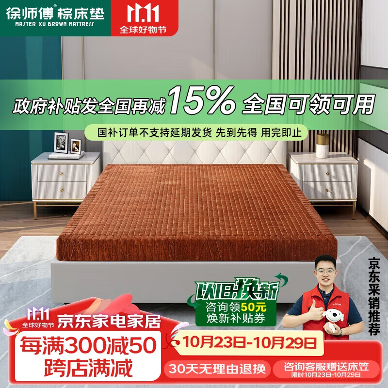 徐师傅全山棕床垫硬棕垫手工线缝单双人榻榻米床垫定制 2*2米价格:6643.00元!