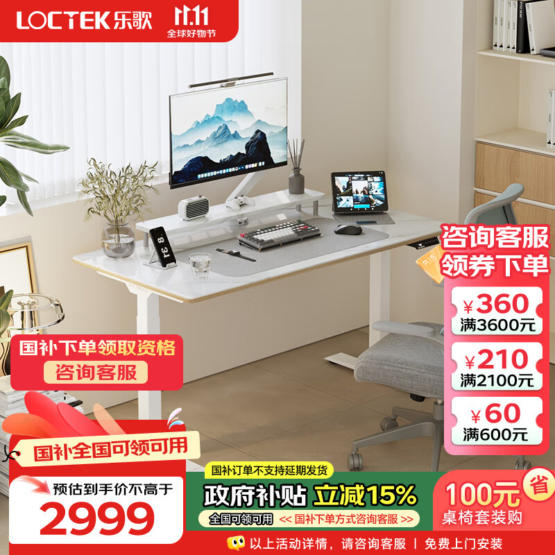 乐歌电动升降桌电脑桌双电机站立办公家用写字书桌 E3/1.4m岩板套装价格:3549.00元!