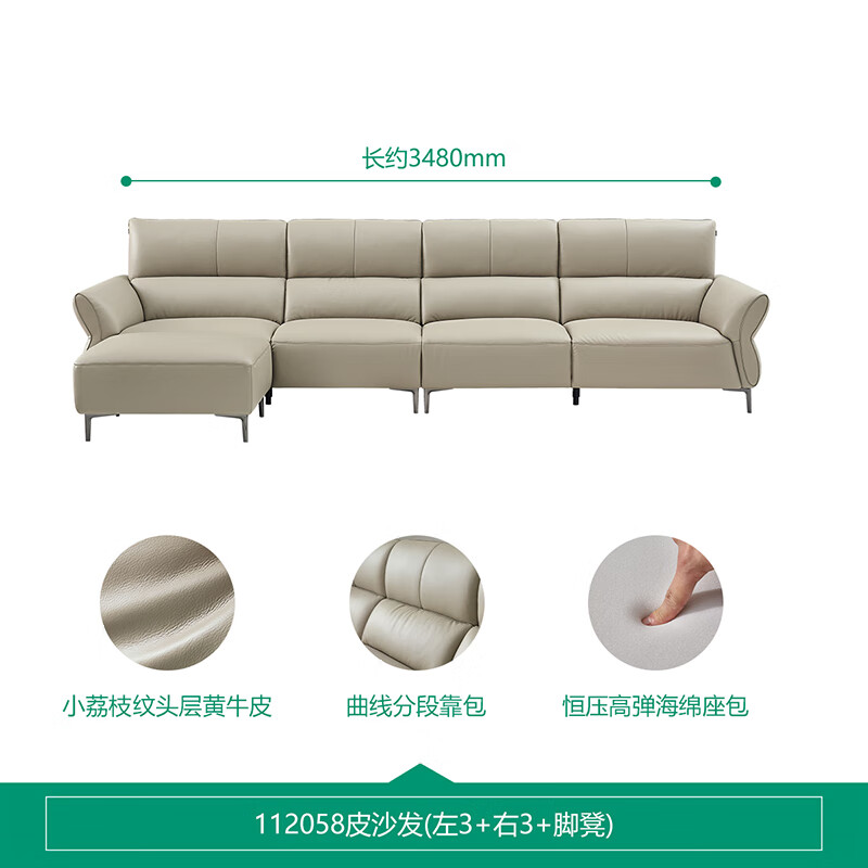 全友家居【迷瞪】112058真皮沙发现代简约大户型客厅头层牛皮高档沙发价格:5298.00元!