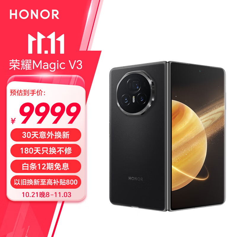 荣耀Magic V3 新款折叠屏 超轻薄长续航 耐摔防水机身 第三代骁龙8 16+512 绒黑色 拍照 5G AI智能手机价格:9999.00元!
