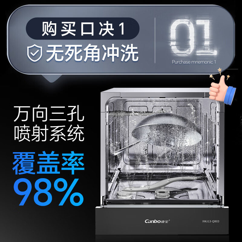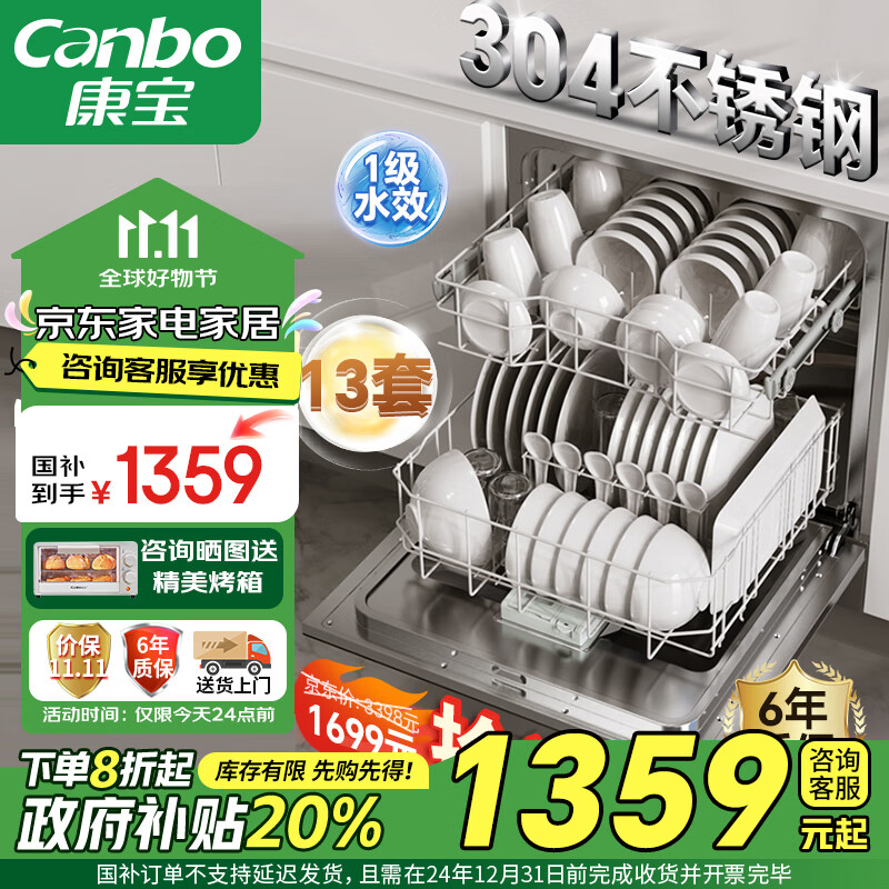 康宝(Canbo)龙卷风洗碗机嵌入式13套家用消毒烘干一体机304不锈钢【国补政府补贴】XWJ13-QB03价格:1699.00元!