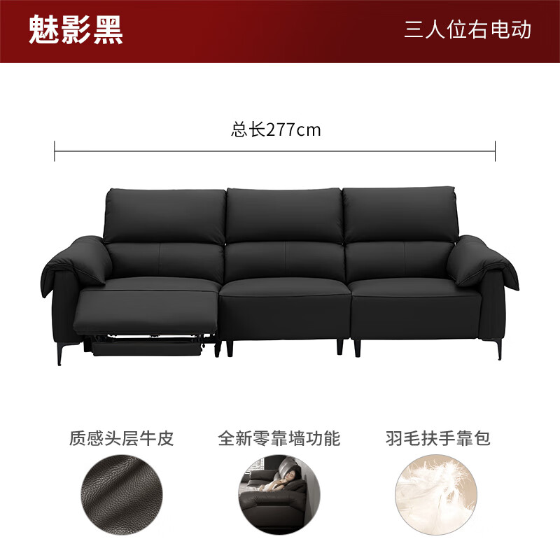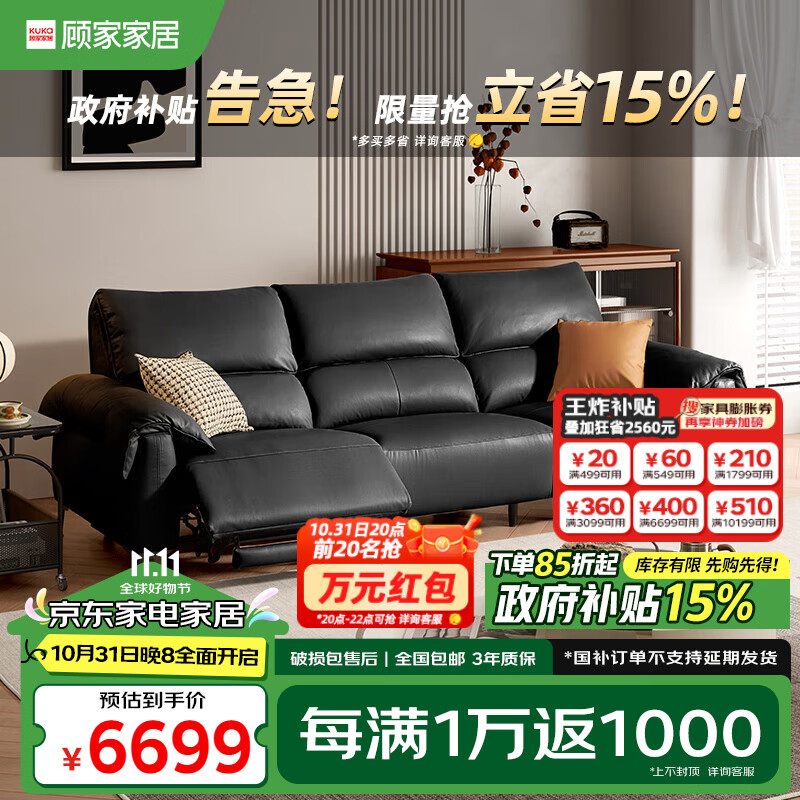 顾家家居(KUKA)【云端系列】意式零靠墙电动功能沙发客厅6212 魅影黑3人位右电动价格:6699.00元!