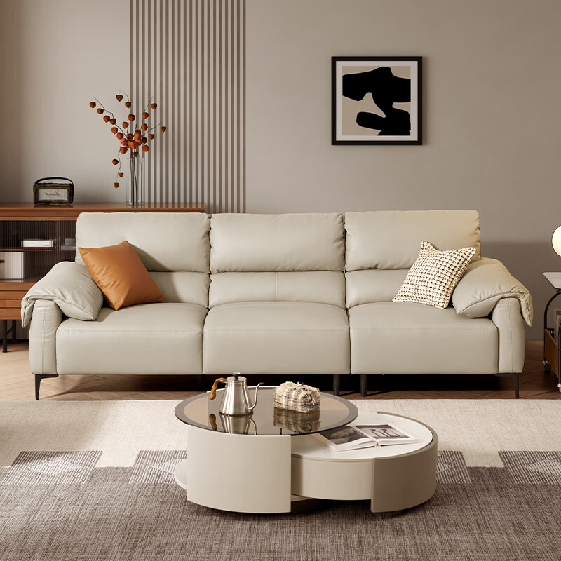 2、沙发很漂亮,放客厅长度尺寸刚好,皮质柔软。