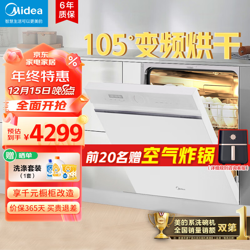 美的(Midea)14套晶焰S50嵌入式洗碗机 变频节能105℃热风烘干一级水效四星消毒UV灭菌洗消一体机价格:4499.00元!