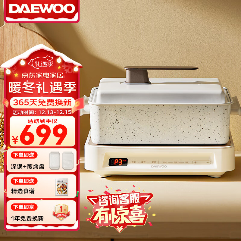 大宇(DAEWOO)多功能锅网红料理锅 家用电火锅电热炒锅电烧烤炉电蒸锅电煮锅不粘 S11PRO(深锅盘+煎烤盘)价格:699.00元!