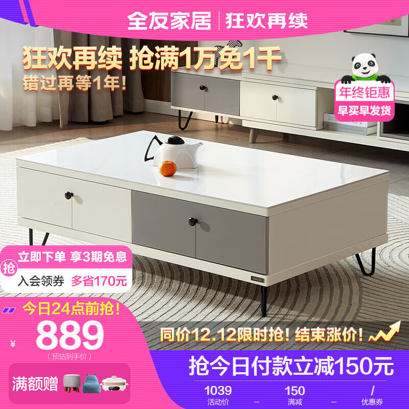 全友家居 现代简约灰白双色地柜岩板台面茶几小户型客厅家具120797A价格:1039.00元!