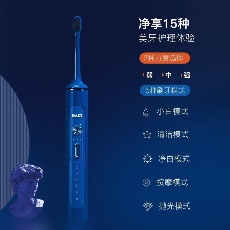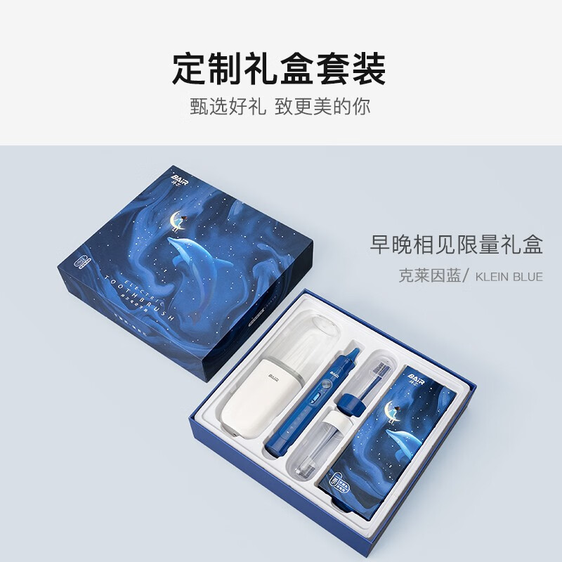 拜尔(BAIR)G2/G201高端旗舰机 电动牙刷成人震动充电智能声波学生情侣全自动牙刷男士女送朋友 礼盒装 克莱因蓝(6枚原装刷头)价格:239.00元!