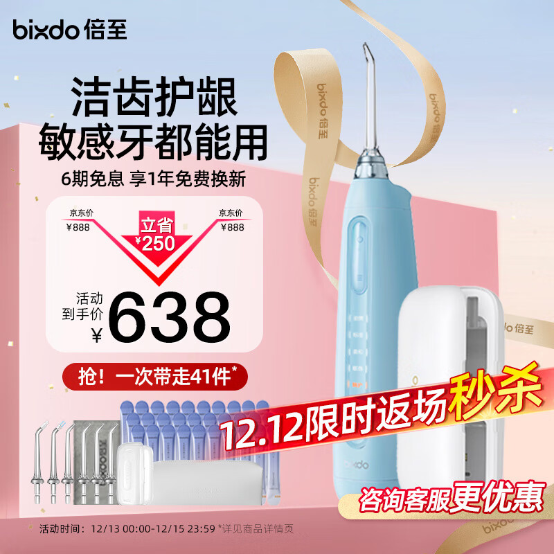 倍至(bixdo)冲牙器 小奶瓶青山蓝+杀菌盒 P52&U50套装价格:638.00元!