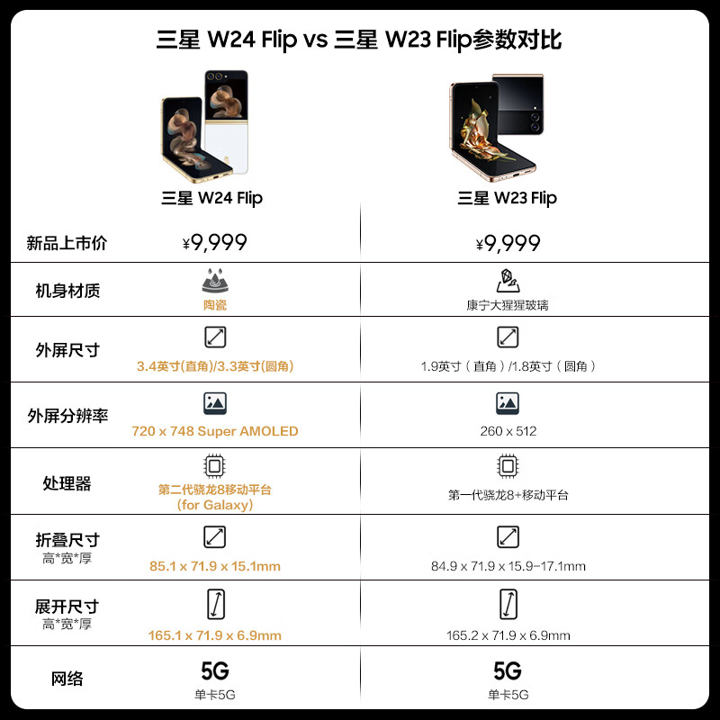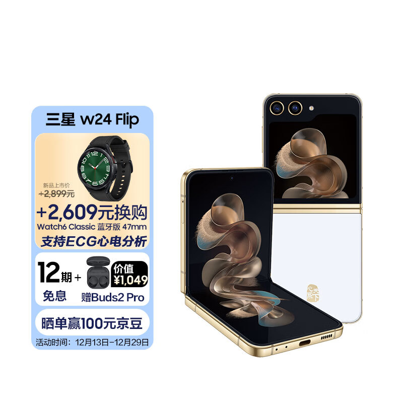 三星 SAMSUNG W24 Flip 12GB+512GB 冰瓷白 大视野智能外屏 掌心折叠 立式自由拍摄 5G折叠屏手机价格:12608.00元!