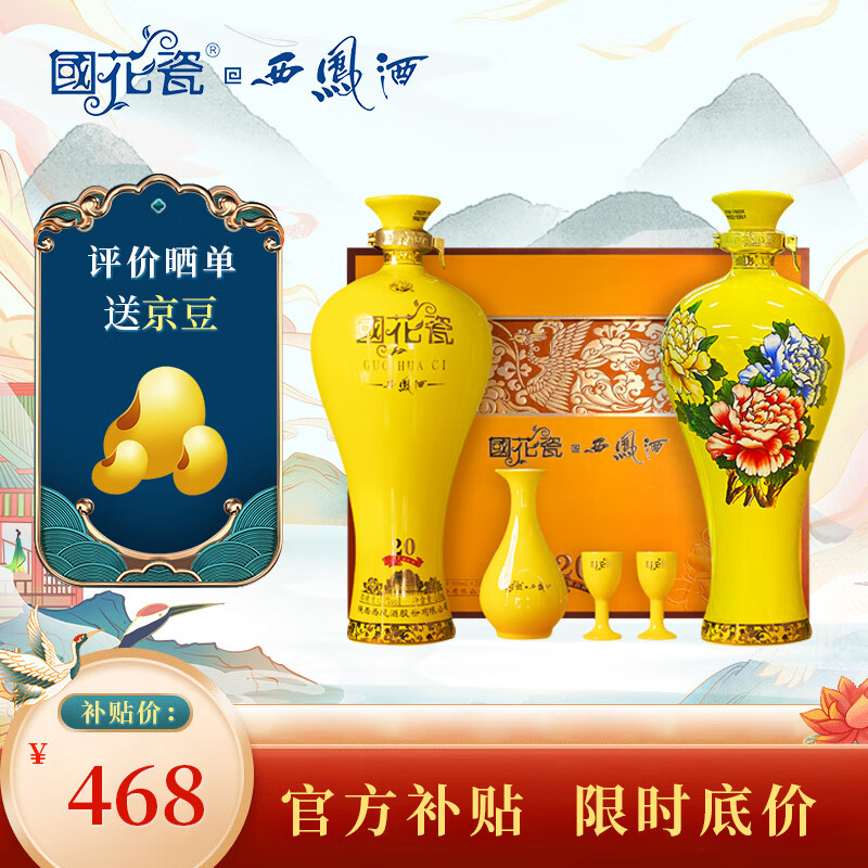 西凤酒20年国花瓷20年52度凤香型白酒礼盒 500ml*2瓶【陕西特产】价格:468.00元!