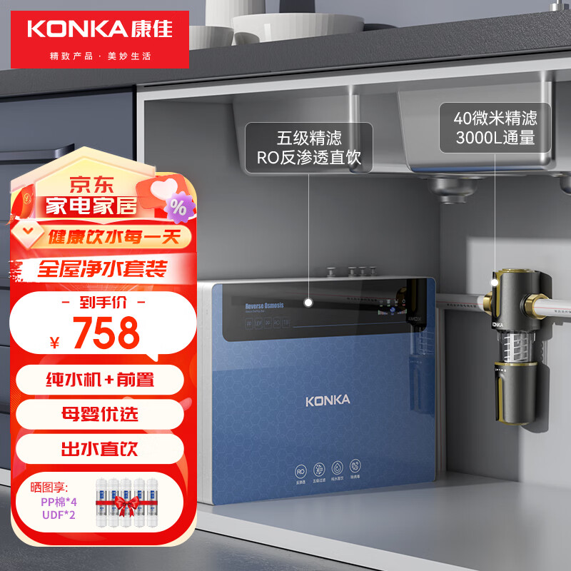 康佳(KONKA)净水器家用直饮厨房自来水过滤器净水机壁挂式RO反渗透纯水机价格:758.00元!