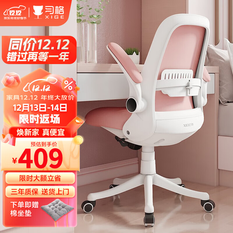 习格家用电脑椅学生学习写字书房座椅办公椅转椅职员会议椅舒适久坐 X9s珊瑚粉(升降腰靠+乳胶坐垫)价格:479.00元!