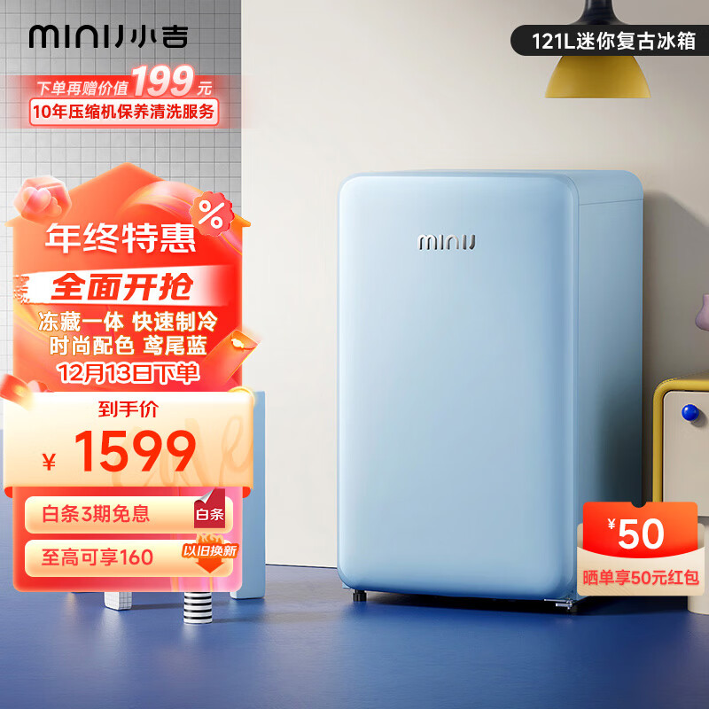 小吉(MINIJ)迷你复古色彩系小冰箱 冷冻冷藏一体 租房宿冰箱小型家用舍办公室节能低噪客厅冰箱 BC-121FA价格:1599.00元!