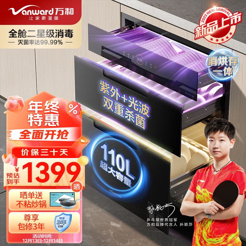 万和(Vanward)消毒柜家用 嵌入式 厨房餐具碗柜碗筷茶杯茶具婴儿奶瓶 紫外线二星消毒 110L三层大容量ZTD110Q-D8价格:1399.00元!