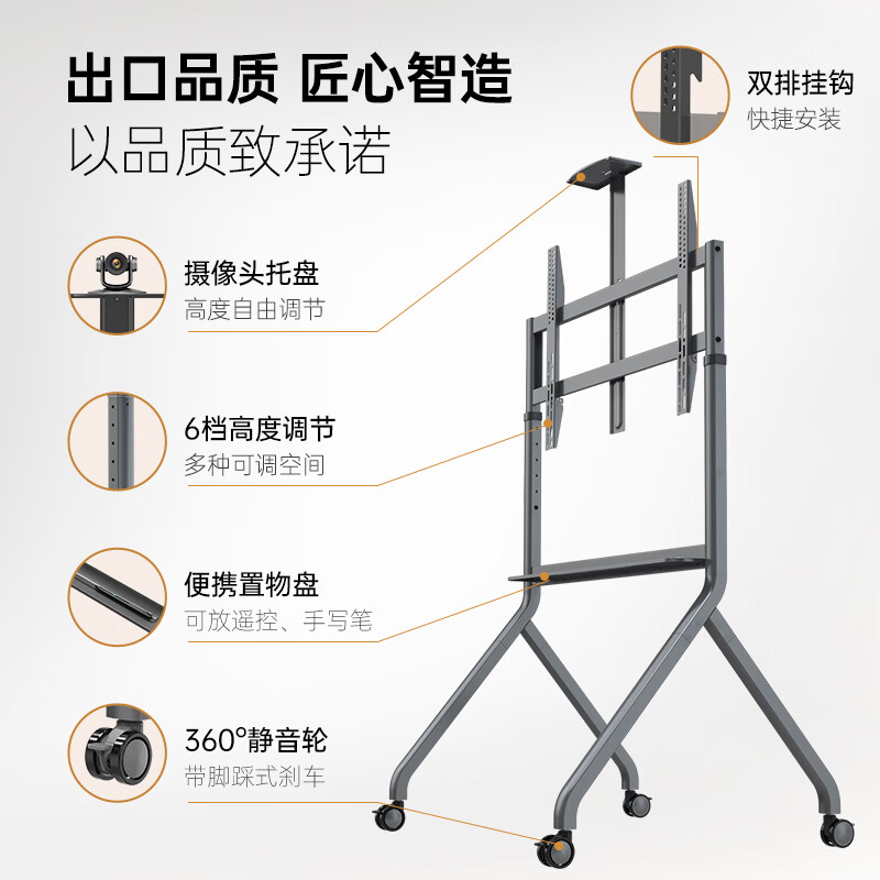 4、架子很稳很牢靠。底盘稳。移动方便。回购很多次了。电视推车这个牌子很好。安装方便,移动方便。还有摄像头架和小托盘。特别实用。
