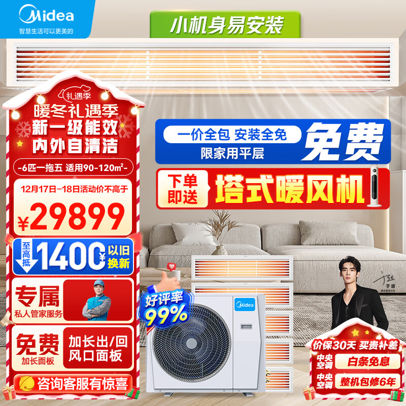 美的(Midea)中央空调一拖五风管机6匹小多联机MDS三代一级能效快速冷暖智能清洁MDS-H140W-A(1)Ⅲ价格:29999.00元!