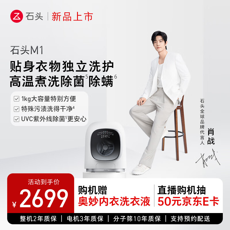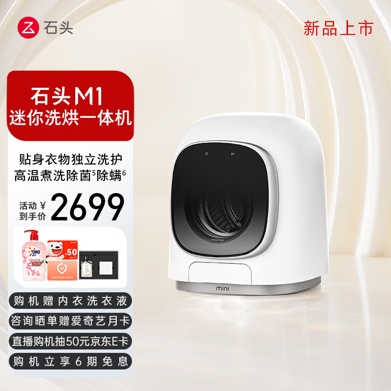 石头(roborock)分子筛迷你洗烘一体机M1 洗烘一体家用小型小尺寸1kg公斤滚筒儿童婴儿内衣全自动洗衣机 星月银 洗烘一体机价格:2699.00元!