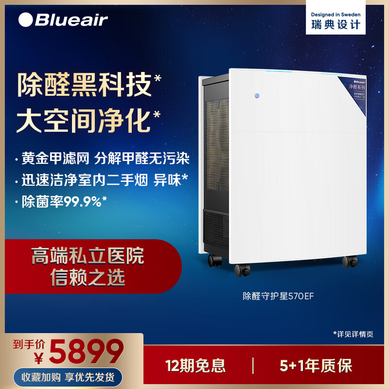 布鲁雅尔(Blueair)空气净化器除甲醛 除醛守护星570EF 大空间 快速分解 除菌二手烟异味雾霾价格:5899.00元!