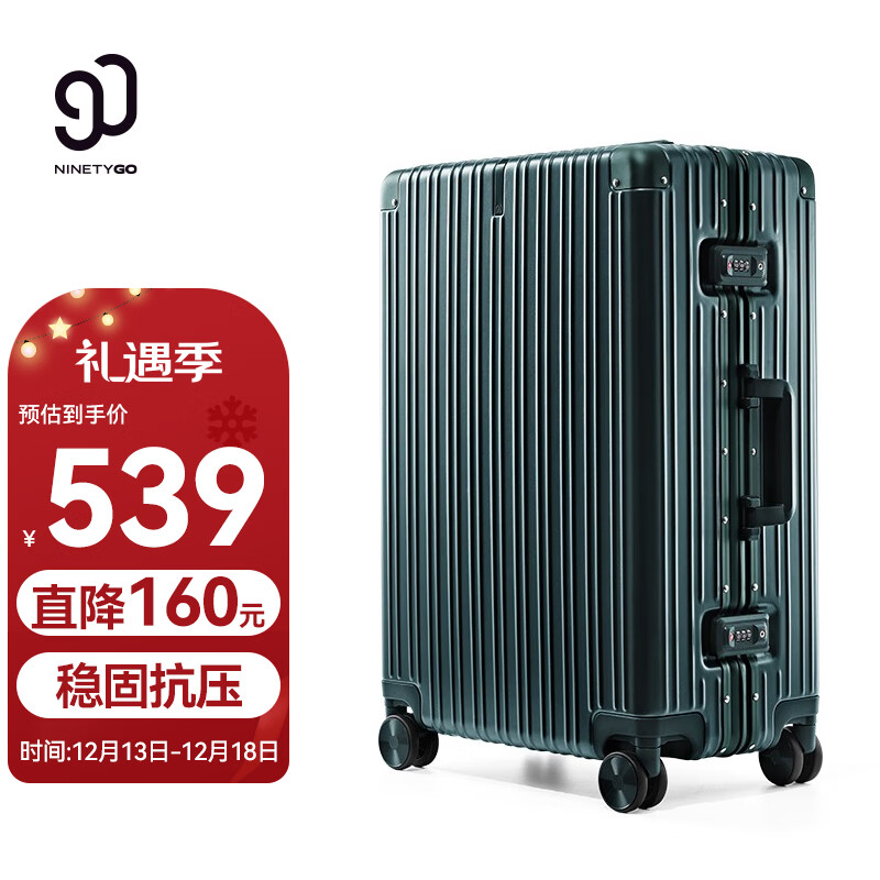 90分PC旅行箱轻质铝框大容量行李箱防刮大容量拉杆箱24英寸托运箱价格:539.00元!
