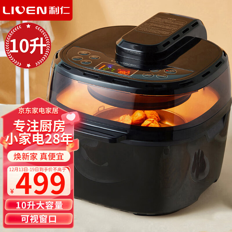 利仁(Liven)空气炸锅可视家用10升大容量智能无油电炸锅蒸汽炸锅 多功能空气炸烤箱空气锅薯条机KZ-D1001价格:499.00元!