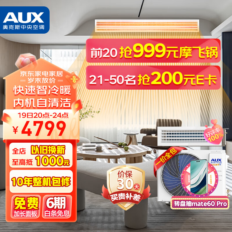 奥克斯(AUX)风管机一拖一2匹变频中央空调智能家用客厅卧室嵌入式空调GR-51DW/BPR3DY2(B3)价格:4999.00元!