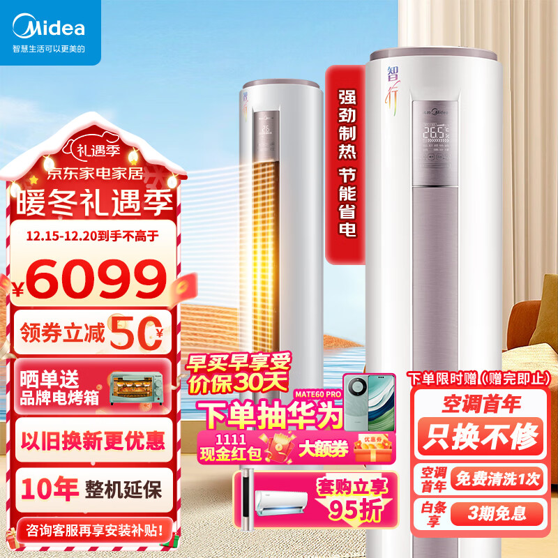 美的(Midea)3匹 智能变频冷暖 空调柜机 新一级能效 新能标KFR-72LW/BDN8Y-YH200(1)A价格:6099.00元!